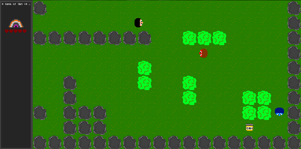 A Game of Jam is an action-adventure game where you play as an unnamed hero who has to defeat the evil Lord Evil.